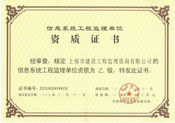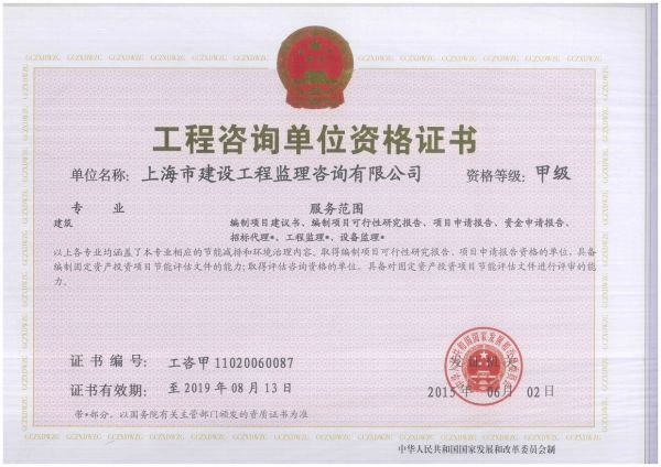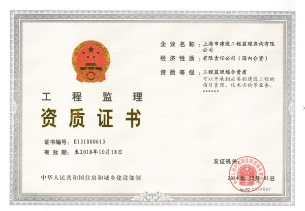 | 资质单位: 上海市建设工程监理咨询有限公司 |