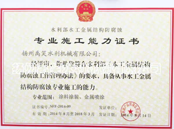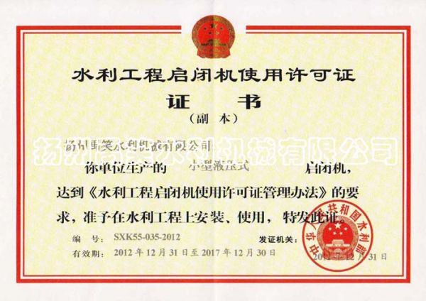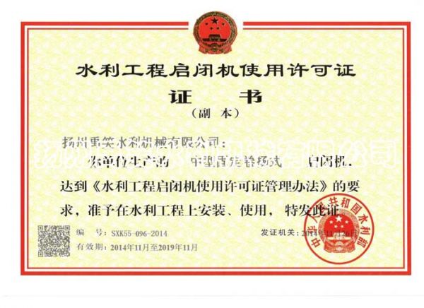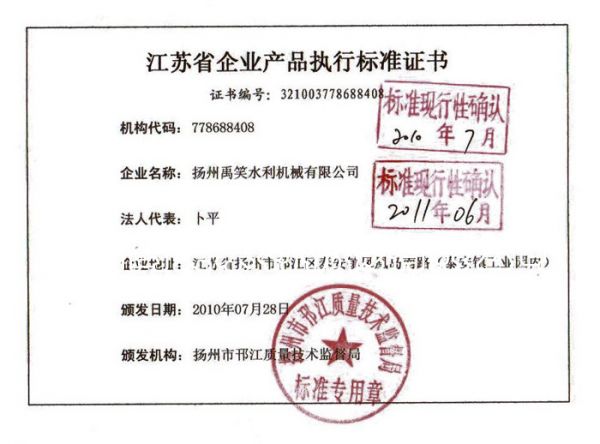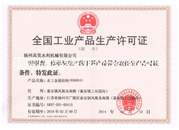 | 持证单位: 扬州禹笑水利机械有限公司 |