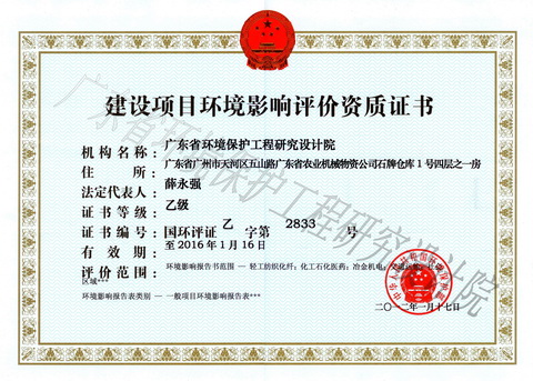 建设项目环境影响评价资质证书 发布时间: 2017-07-18 14:36:21 发布网站: 中国水电物资招标网