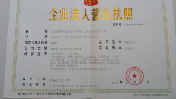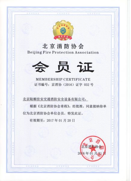 | 持证单位: 北京陆顺佳安交通消防安全设备有限公司 |