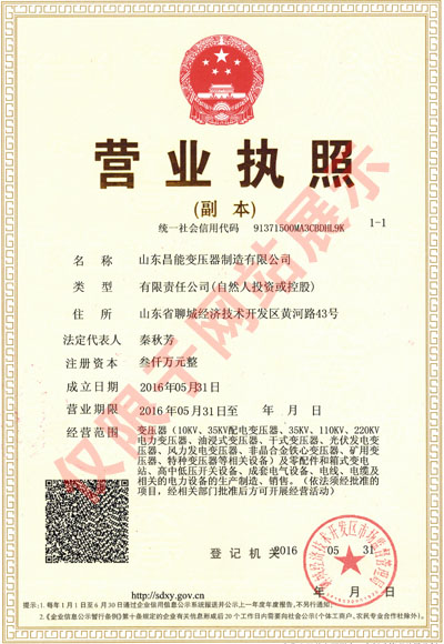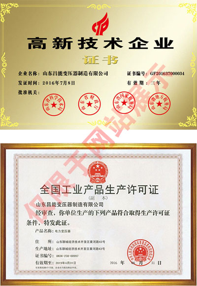 | 持证单位: 昌能变压器制造有限公司 |
