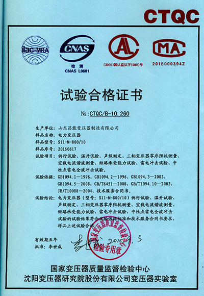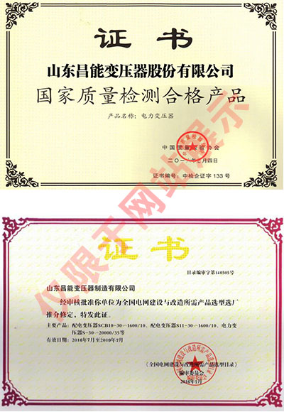 | 资质单位: 昌能变压器制造有限公司 |