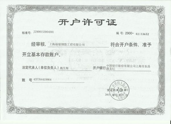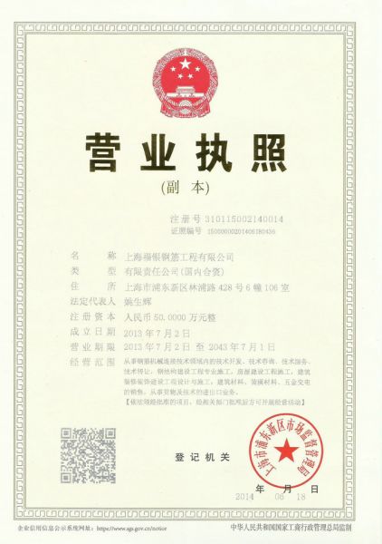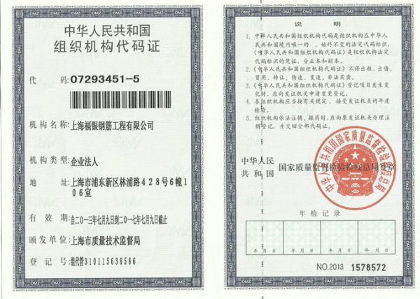 | 持证单位: 上海福银钢筋工程有限公司 |